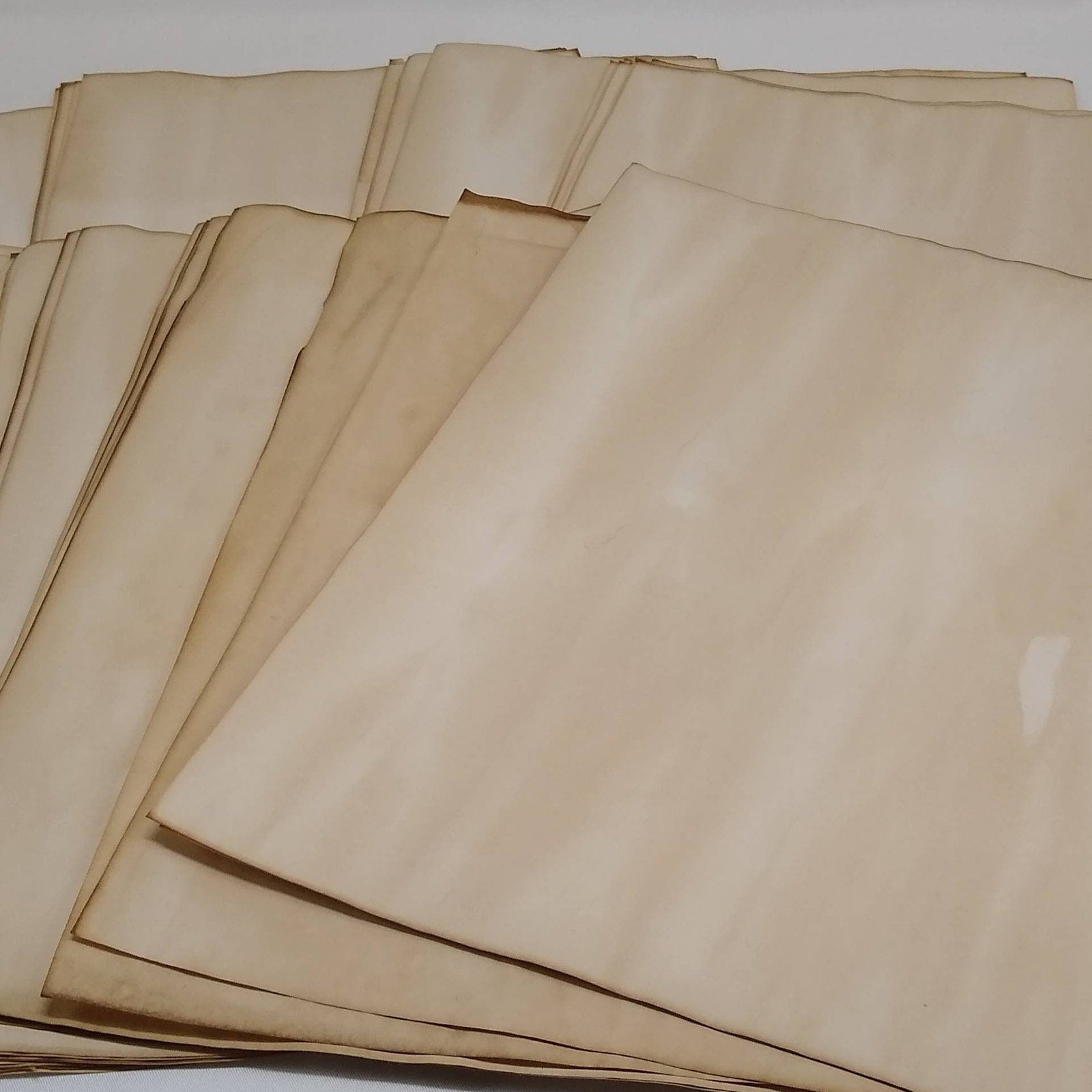 Their patterns are splotchy and uneven, creating a beautiful aged effect. These are example photos and may not be the exact item received. These papers have natural variation and imperfections due to their perfectly handmade nature. Some may have wrinkling and/or small tears along the edges and corners.