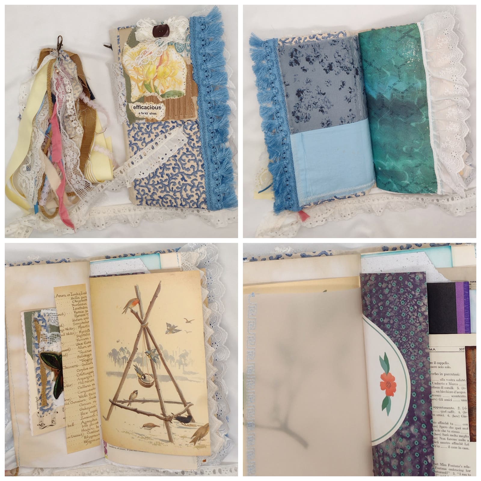 Blue and White Junk Journal, Handmade Journal, Embellished Junk Journal