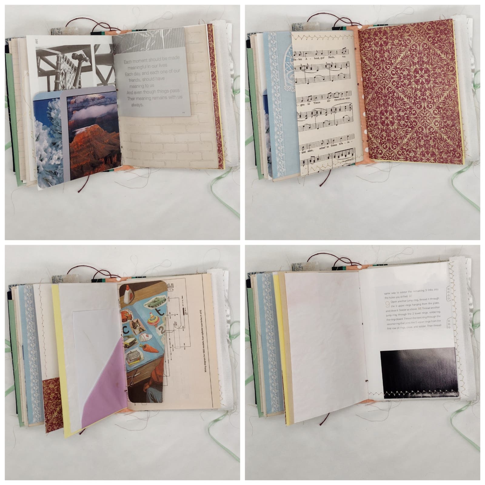 This unique and one-of-a-kind journal is handcrafted with a mix of repurposed materials, making it an eco-friendly choice for any writer or artist. The eclectic design includes a variety of textures and colors, creating a visually stunning piece that is both functional and beautiful.
