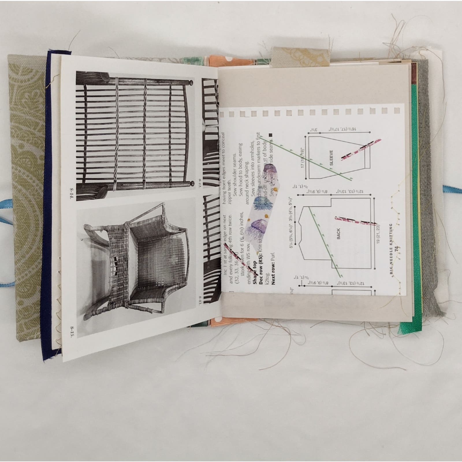 This unique and handmade journal is perfect for those who love eclectic and creative designs. The pages are made from recycled materials, giving it a rustic and vintage feel. The journal features a mix of various media, including paper crafts and other artistic elements.