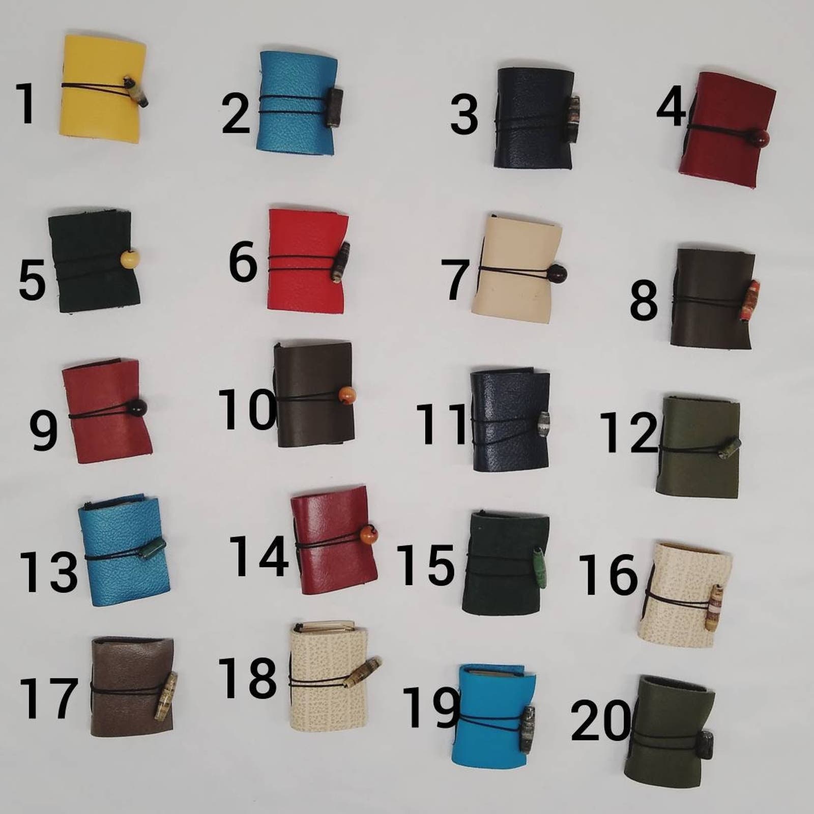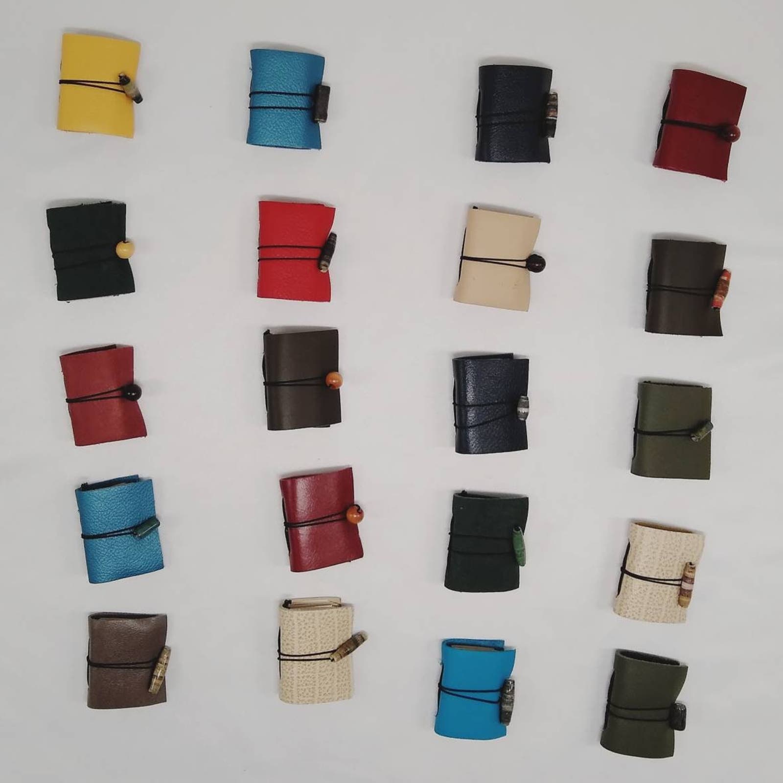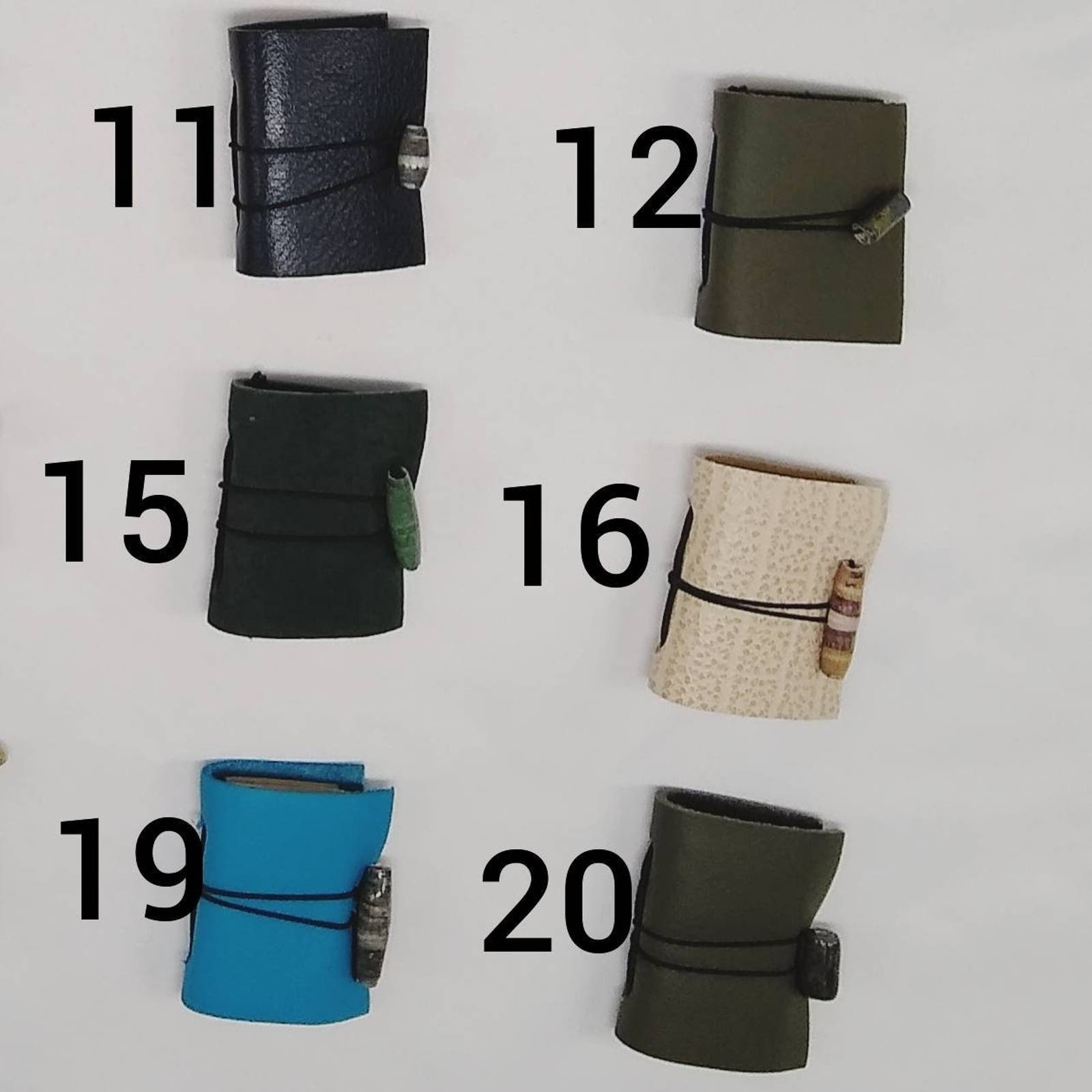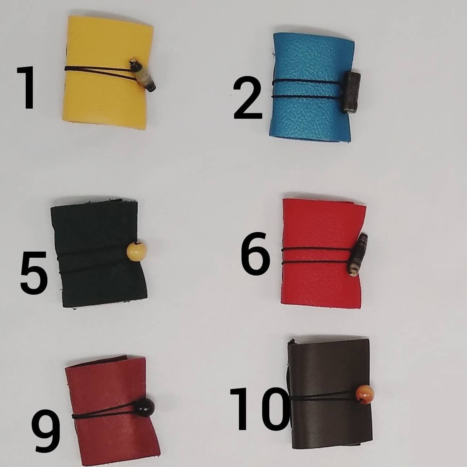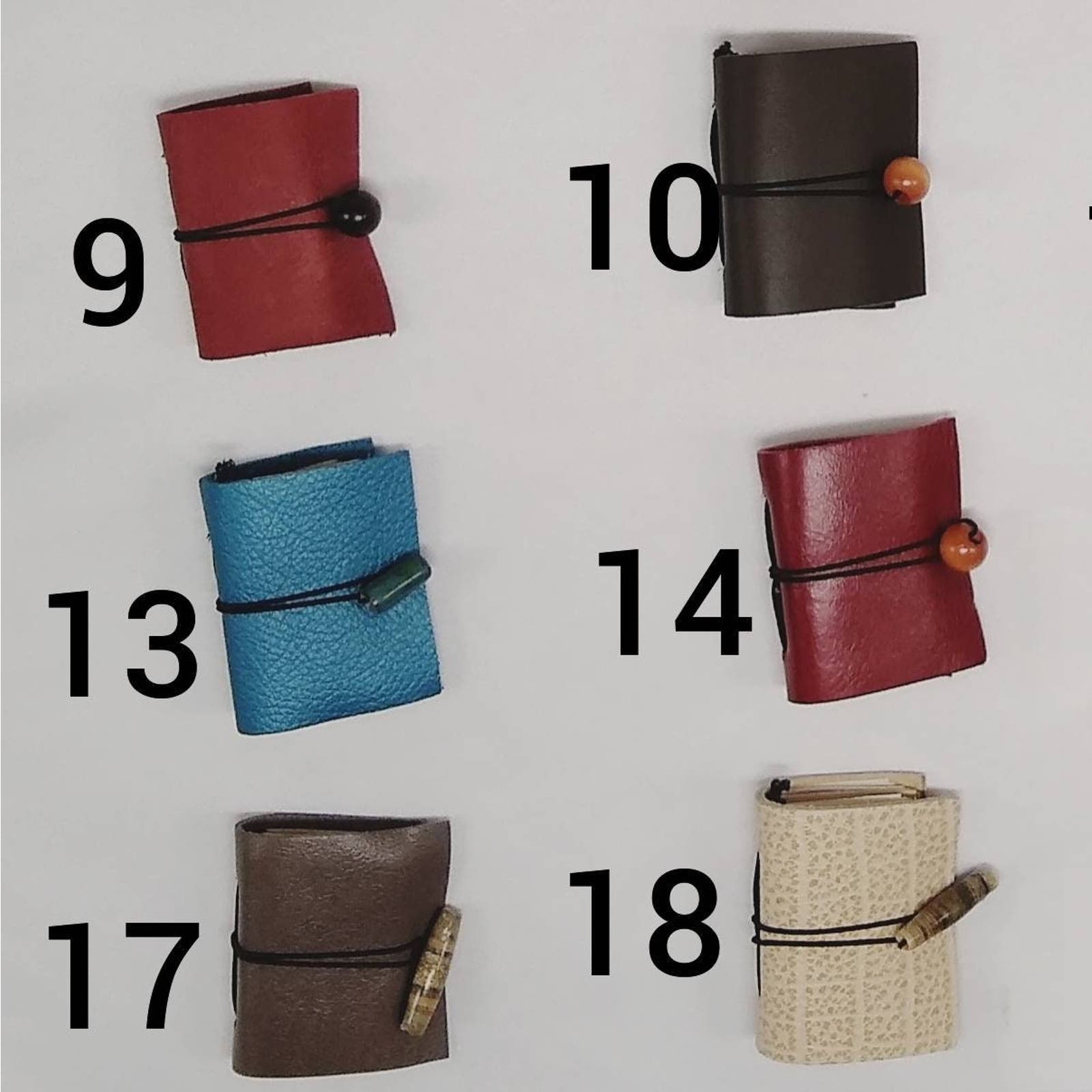 These miniature leather journals are handbound Midori style refillable journals. These colorful small leather journals make perfect gifts that are sure to delight.