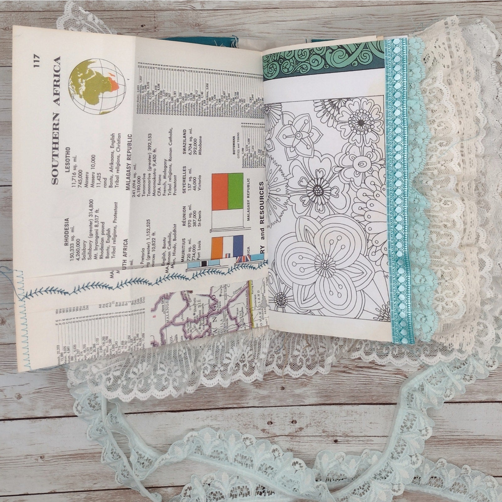 Turquoise Embellished Junk Journal: Flowers, Birds and Butterflies (Explore)