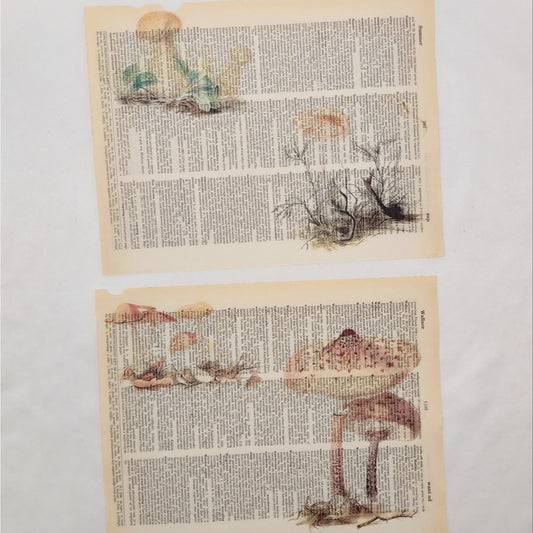 Mushroom Dictionary Prints, Colorful Mushroom Prints, Book Page Prints